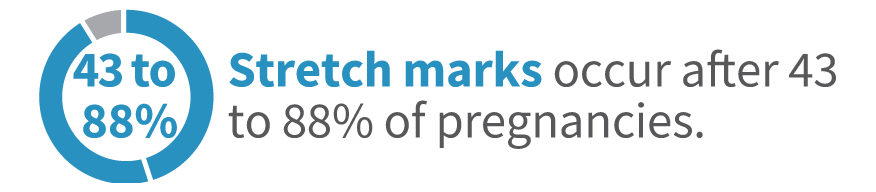 Stretch marks occur after 43 to 88 percent of pregnancies. Additionally, about 43 percent of obese patients develop stretch marks.
